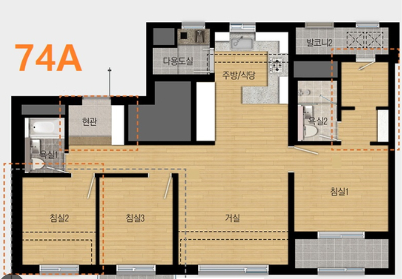 하지만 이 사이에 자리한 전용 74타입은 상대적으로 덜 알려져 있지만, 최근 몇 년 사이 가성비와 활용성을 모두 갖춘 평형으로 떠오르고 있습니다.