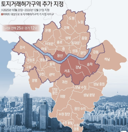 정부는 10월 15일 ‘주택시장 안정화 대책’의 일환으로 서울 주요 지역을 토지거래허가구역(토허제) 으로 일괄 지정했습니다.
