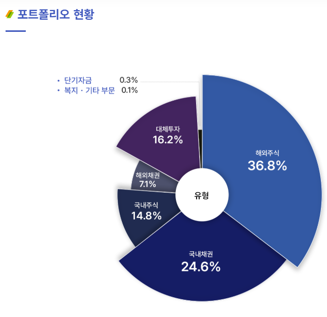 아래는 국민연금의 자산 구성 비중을 요약한 표입니다.