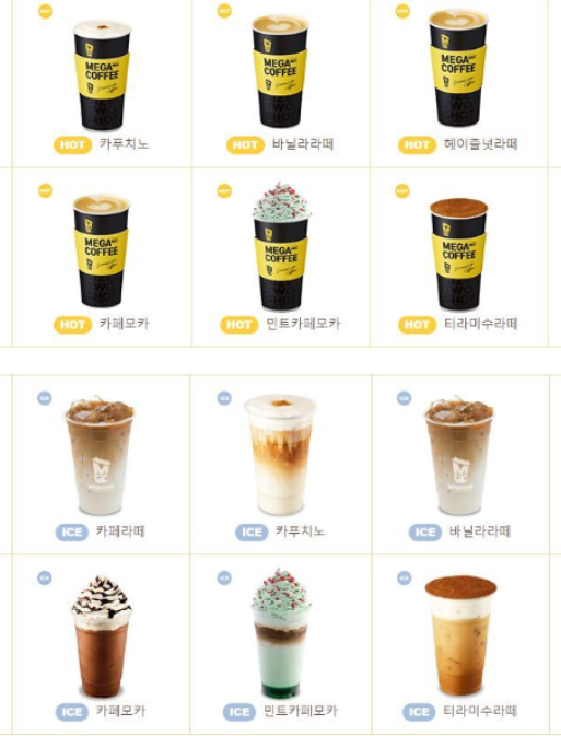 메가커피의 인기 메뉴들을 살펴보니, 여러분만의 최애 음료와 간식을 찾을 준비가 되셨나요?